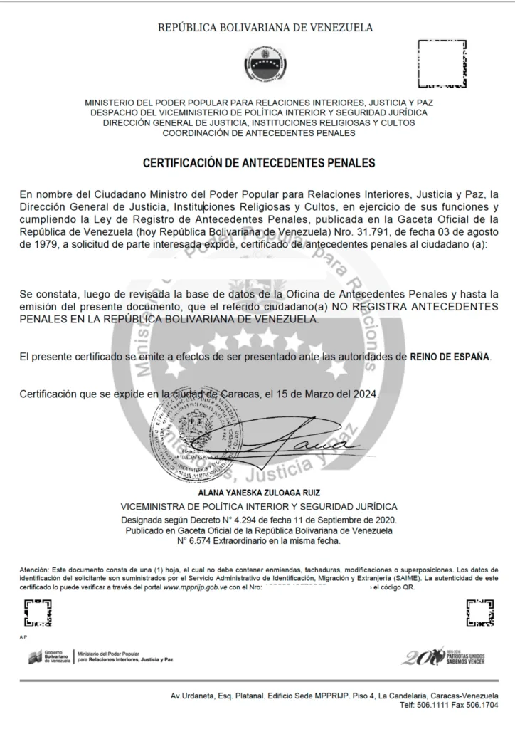 Excelente servicio, me ayudó con los antecedentes penales de Venezuela para usarlo en España. Muy atento a que todo salga correcto y bien. Lo recomiendo 100%
